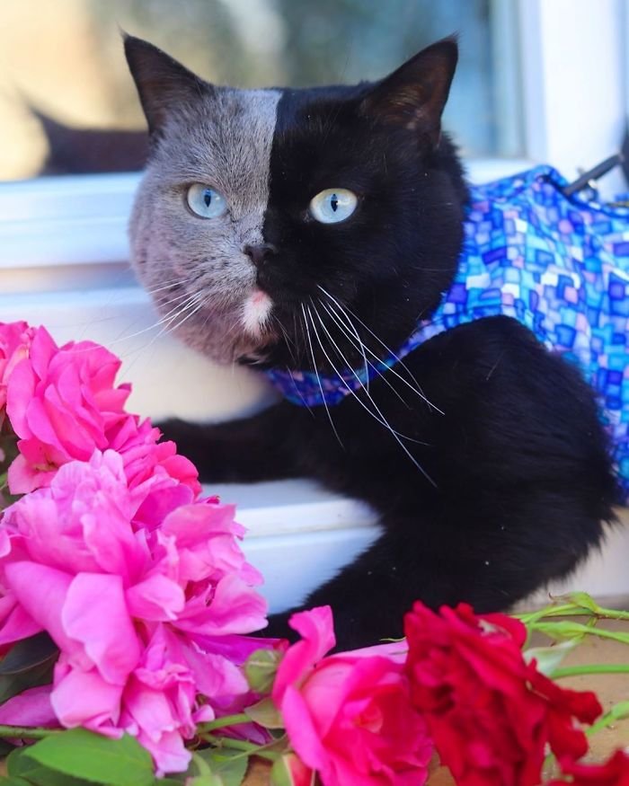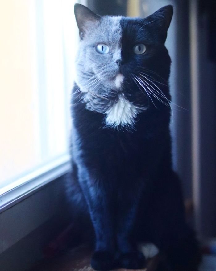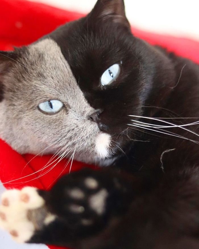 Jeśli jesteś miłośnikiem kotów, być może słyszałeś o Narni – kocie o dwukolorowym pysku. Jego pysk jest idealnie równo podzielony na połowę szarą i czarną. Cóż, po raz pierwszy słyszeliśmy o nim w 2018 roku. A teraz, będąc dorosłym kocurem, Narnia został ojcem dwóch kotek: czarnej Prasy i siwej Phoenix. Co ciekawe, każda z nich ma kolor dokładnie jak z pyska swojego ojca.